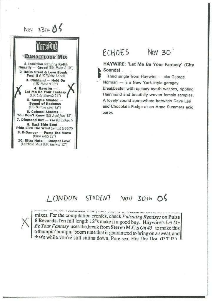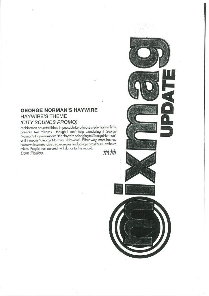 TGN (Thats George Norman) has established and proven credentials as a record producer, having worked for various reputable record companies from the late 1980s to the mid-1990s and beyond, releasing records under the artist’s name ‘Haywire’. The material released was of a consistently high caliber attracting interest from the music press and specialised radio including BBC’s essential selection (Pete Tong) and Kiss FM (Dave Pierce).